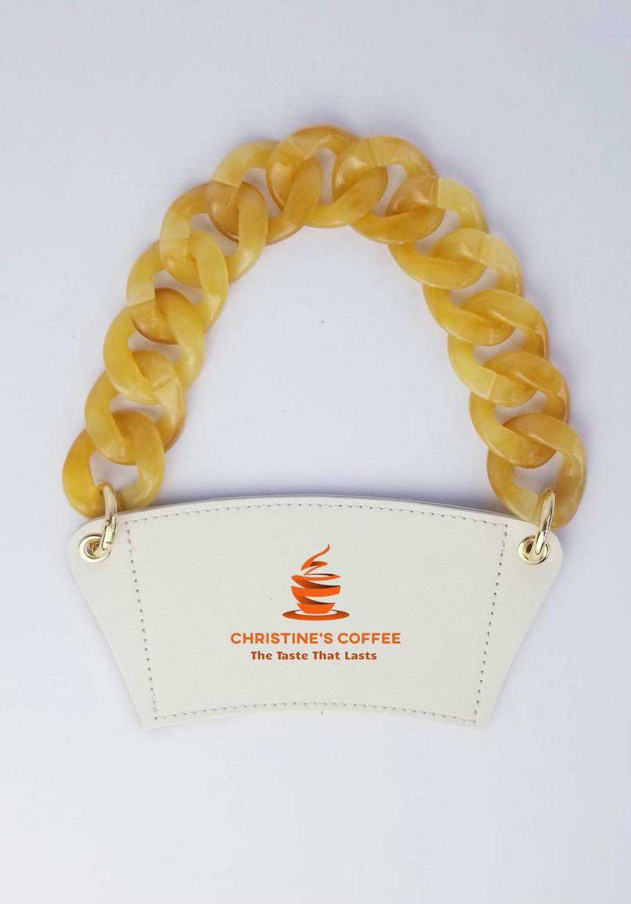 Christine’s Coffee leather chain cup heat insulated coffee sleeve holder. Holds 12oz, 16oz, and 20oz cups of coffee.